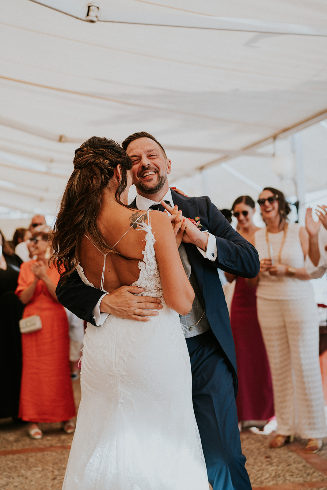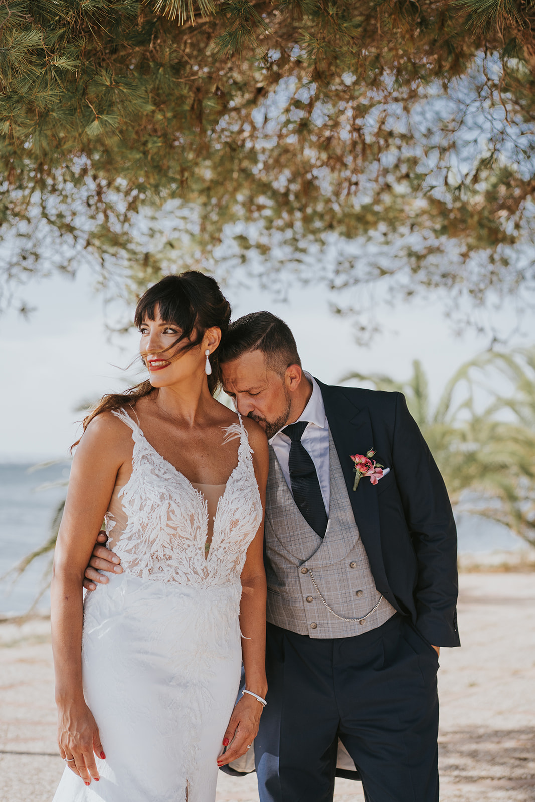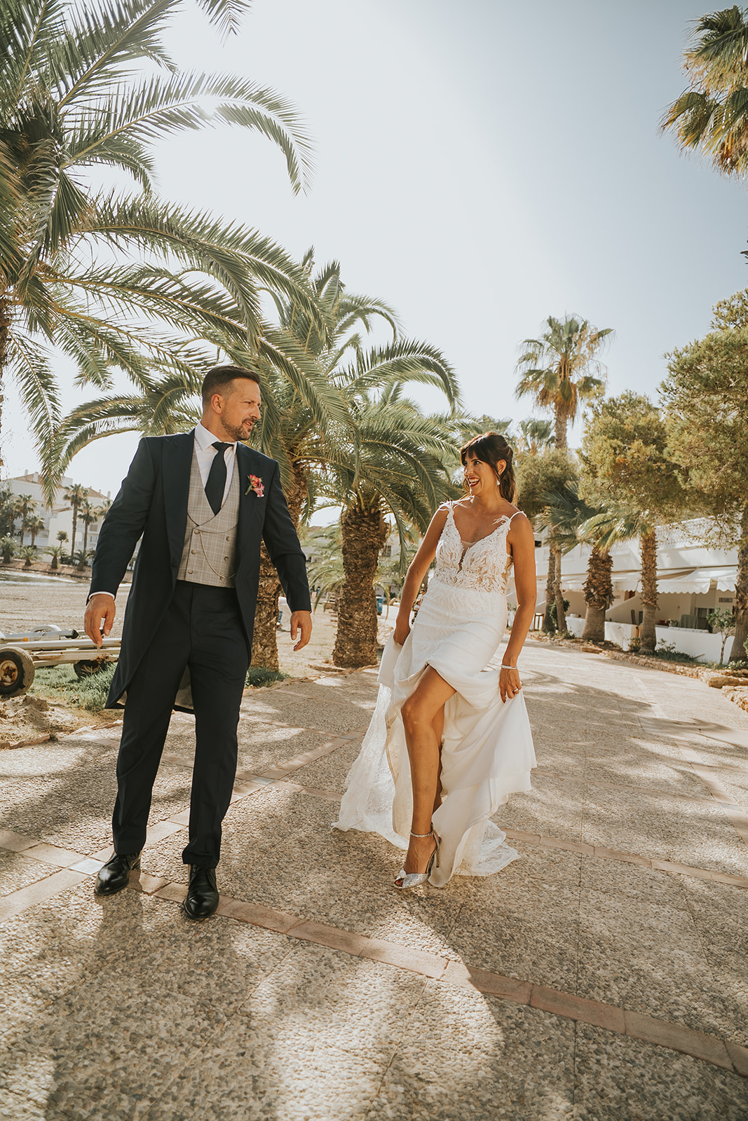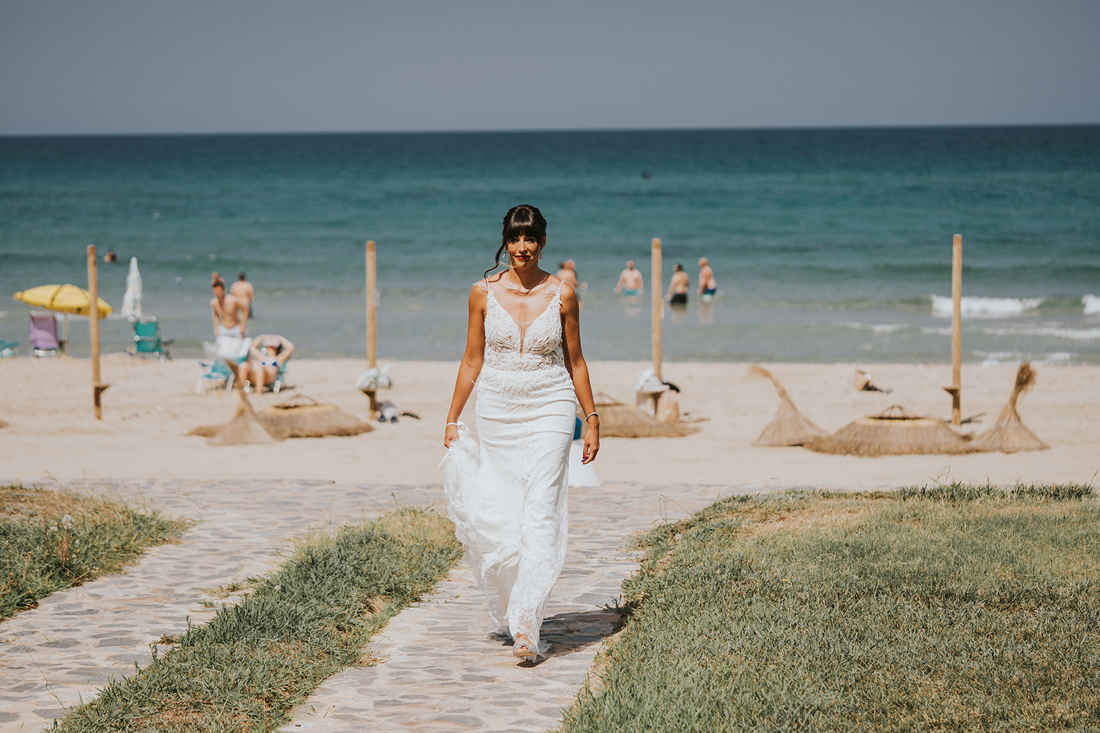 Cada detalle de esta boda frente al mar estuvo cuidado con mimo, desde el altar decorado con flores hasta la salida de los novios bajo el sol del Mediterráneo.