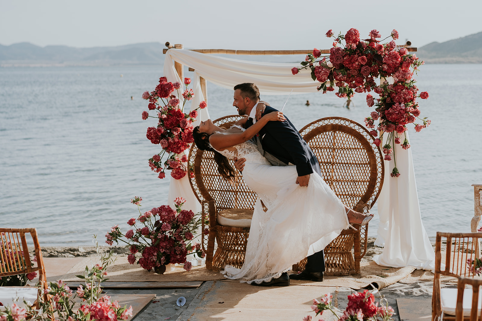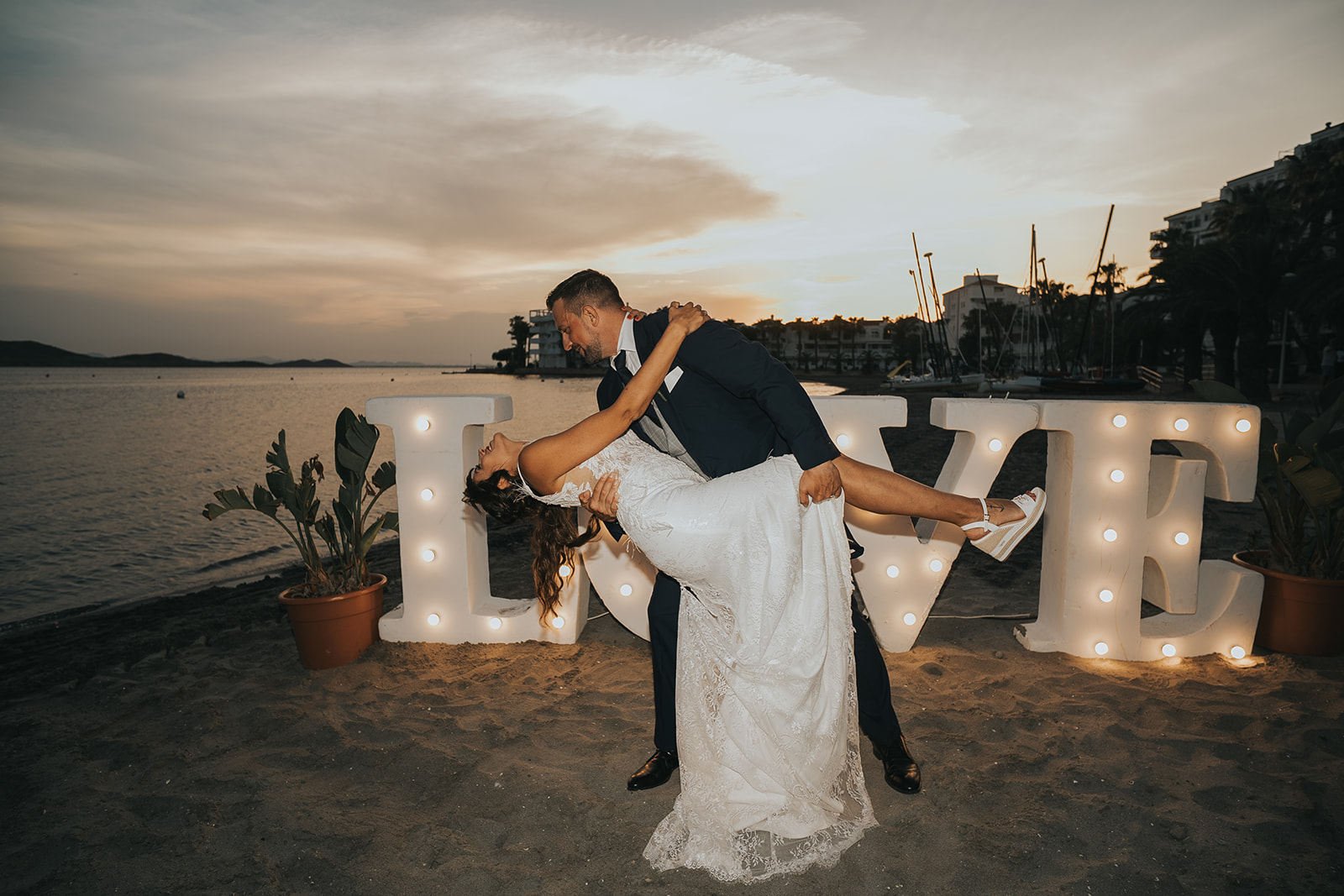 Área Sunset se ha convertido en uno de los lugares más demandados para bodas en la playa en Murcia. Su ubicación privilegiada frente al Mar Menor permite disfrutar de una luz mediterránea espectacular, especialmente durante la hora dorada.